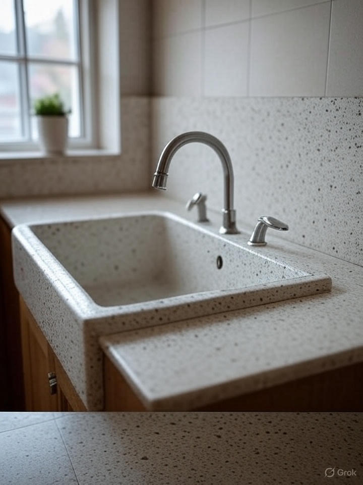Especialistas em instalar pias, tanques e louças com acabamento impecável, utilizando materiais como terrazzo para um toque sofisticado.